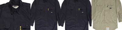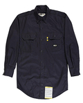 7 oz., 100% flame resistant twill; Meets the requirements of ASTM F1506, NFPA 70E, NFPA2112, and OSHA 1910.269; Button front; Pockets with flaps and button closures; Pencil slot on left pocket; Triple-needle stitched main seams; Adjustable button cuffs;