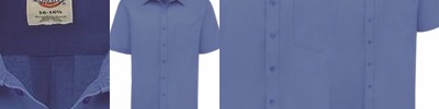3.7 oz., 100% cotton; chambray lined collar & cuff; Left-chest pocket; Chainstitching on bottom hem; Half back yoke; Black neck taping; Modern fit;